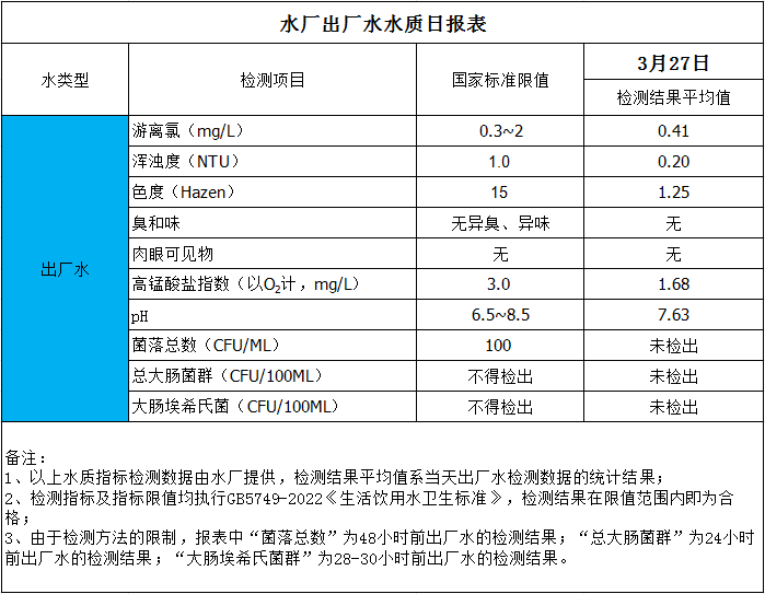 水廠出廠水水質(zhì)日?qǐng)?bào)表(2025-3-27)