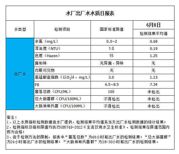水廠出廠水水質(zhì)日報表(2023-6-8)