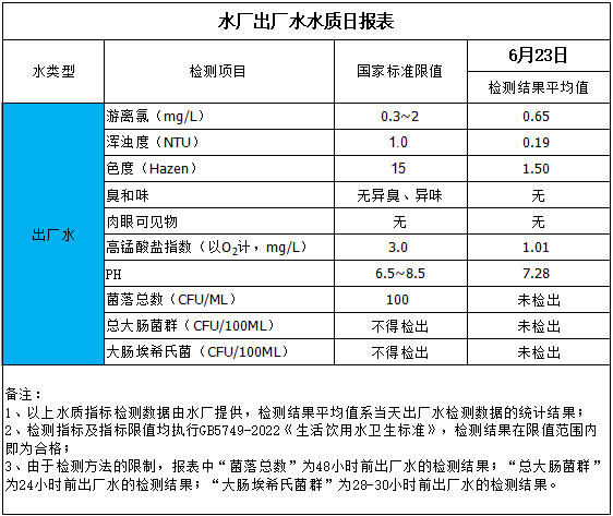 水廠出廠水水質(zhì)日?qǐng)?bào)表(2024-6-23)